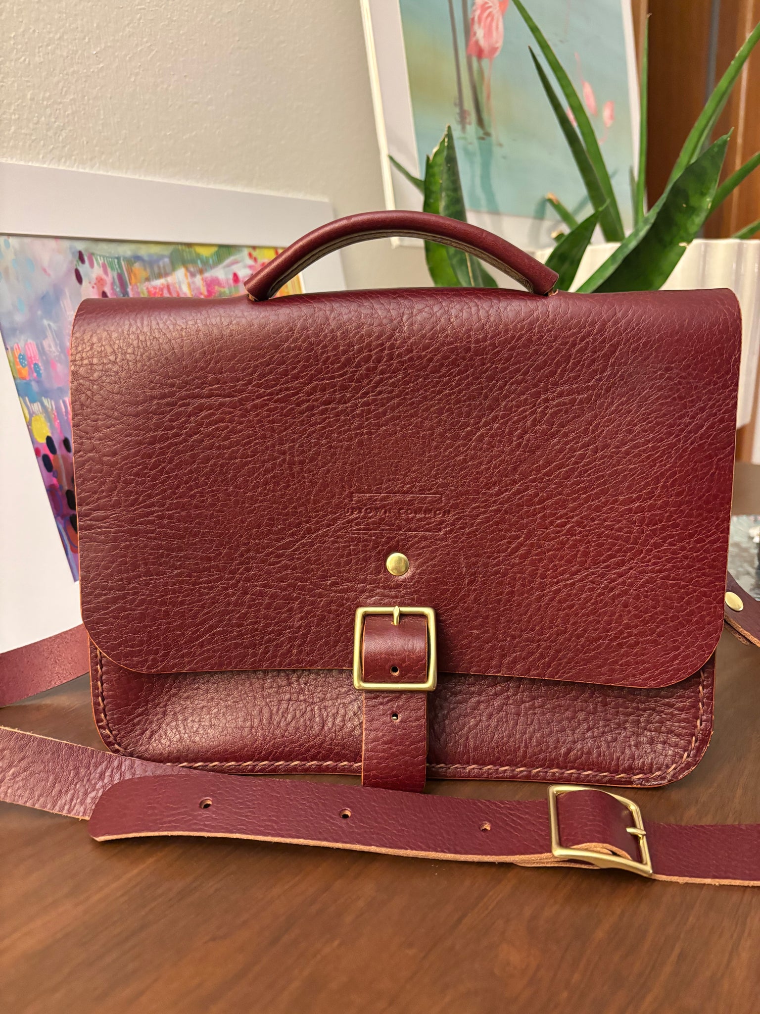 Expertly crafted from hand-sewn leather, this exquisite handbag (known as la Borsetta in Italian) boasts a spacious interior to hold all your essentials. Measuring 10” in width, 8” in height, and 3 3/4” in depth, this piece is made from premium vegetable-tanned leather sourced from the renowned Spanish tannery, Splenda. The stunning design is accented with solid brass buckles, clasps, d-rings, and rivets.